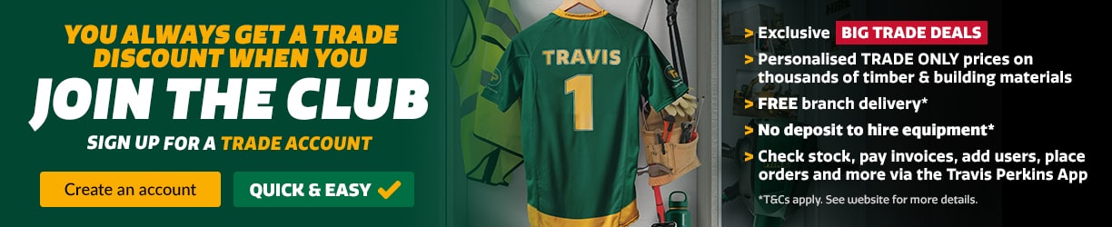 Welcome to Travis Perkins. Whether you’re looking for tools or timber for a one-off job, or a large number of building materials for a big project, you’ll find everything you need all in one place, here online. Across many categories we have tools and materials ranging from products suitable for landscaping and gardening projects to interior decorating, joinery, bathrooms, kitchens and so much more. Take a look through the categories or use the search function above to quickly discover all the tools and materials you need.